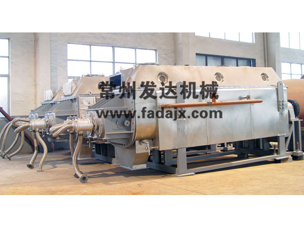 热风式即通过热载体(如热空气)与被干燥的物料相互接触并进行干燥,在传导式中热载体并不与被干燥的物料直接接触,而是热表面与物料相互接触。空心轴上密集排列着楔型中空桨叶,热介质经空心轴流经桨叶。单位有效容积内传热面积很大,热介质温度从-40~320°C,可以是水蒸气,也可以是液体型:如热水、导热油等。间接传到加热、没有携带空气带走热量,热量均用来加热物料,热量损失仅为通过器体保温层向环境的散热。楔形桨叶传热面具有自清洁功能,物料颗粒与楔形面的相对运动产生洗刷作用,能够洗刷掉楔形面上的附着物,试运转中一直保持着清洁的传热面。